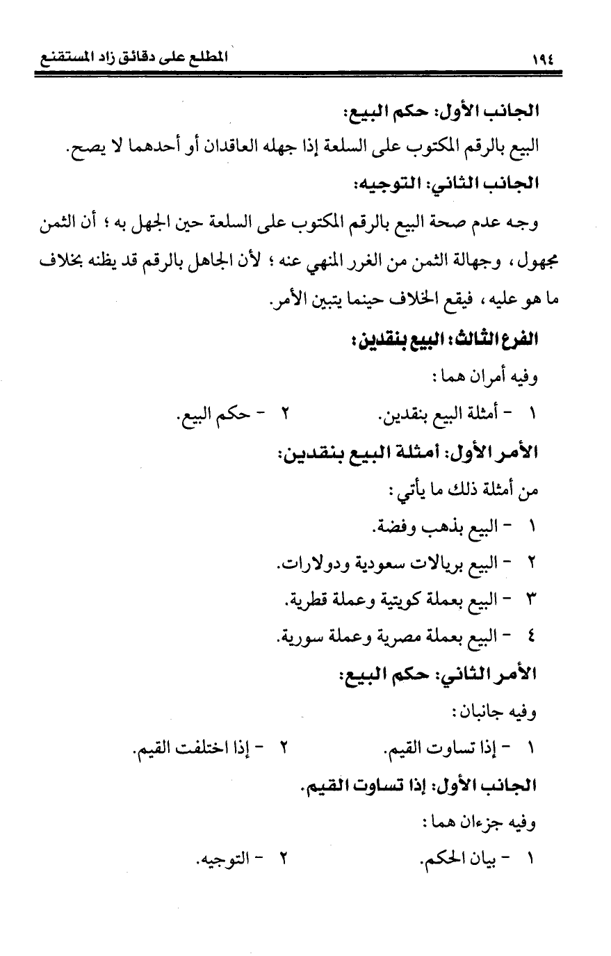 كتاب المطلع على دقائق زاد المستقنع «المعاملات المالية» (اسم الجزء: 1)