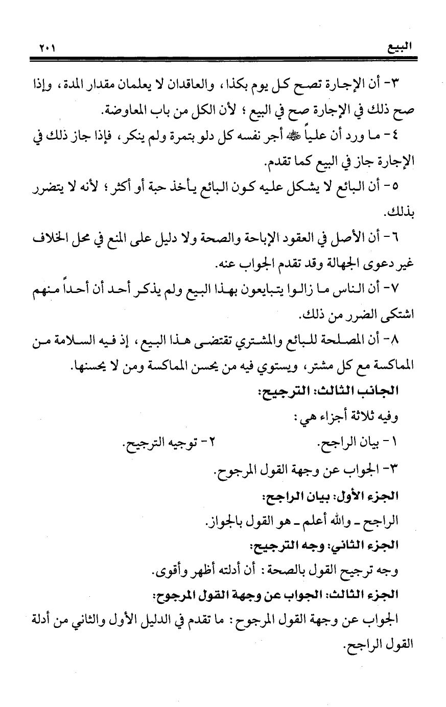 3 - أن الإجارة تصح كل يوم بكذا، والعاقدان لا يعلمان مقدار المدة، وإذا صح ذلك في الإجارة صح في البيع؛ لأن الكل من باب المعاوضة.