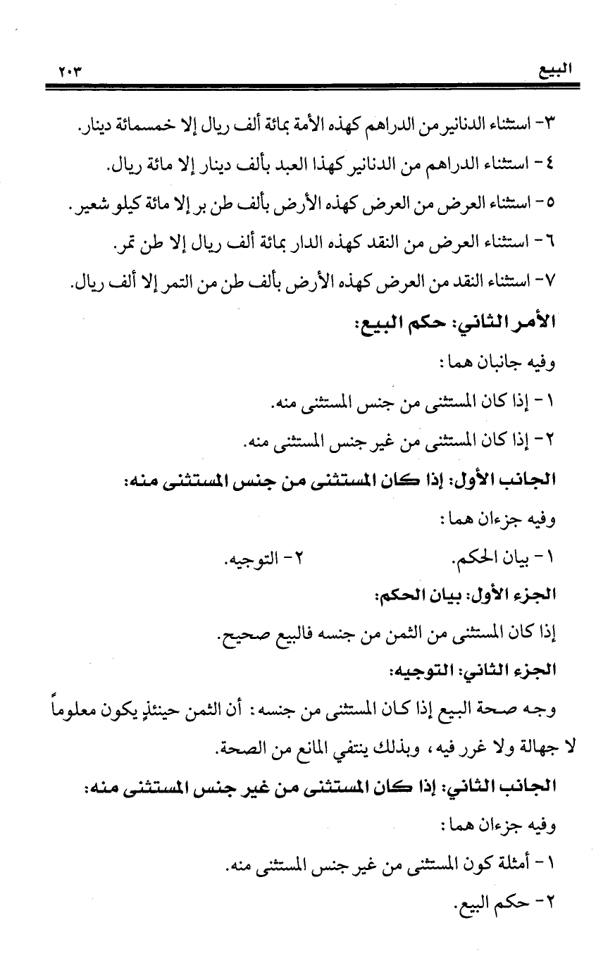 7 - استثناء النقد من العرض كهذه الأرض بألف طن من التمر إلا ألف ريال.