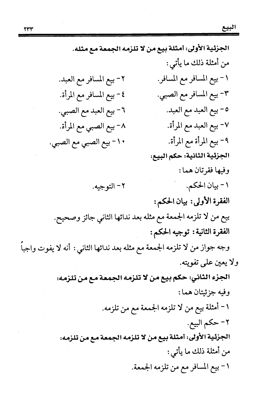 الجزئية الأول: أمثلة بيع من لا تلزمه الجمعة مع مثله.
