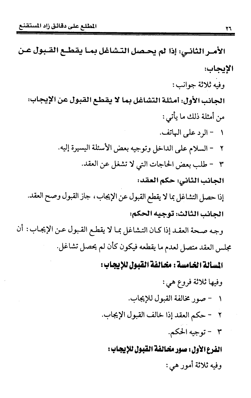 الجانب الأول: أمثلة التشاغل بما لا يقطع القبول عن الإيجاب: