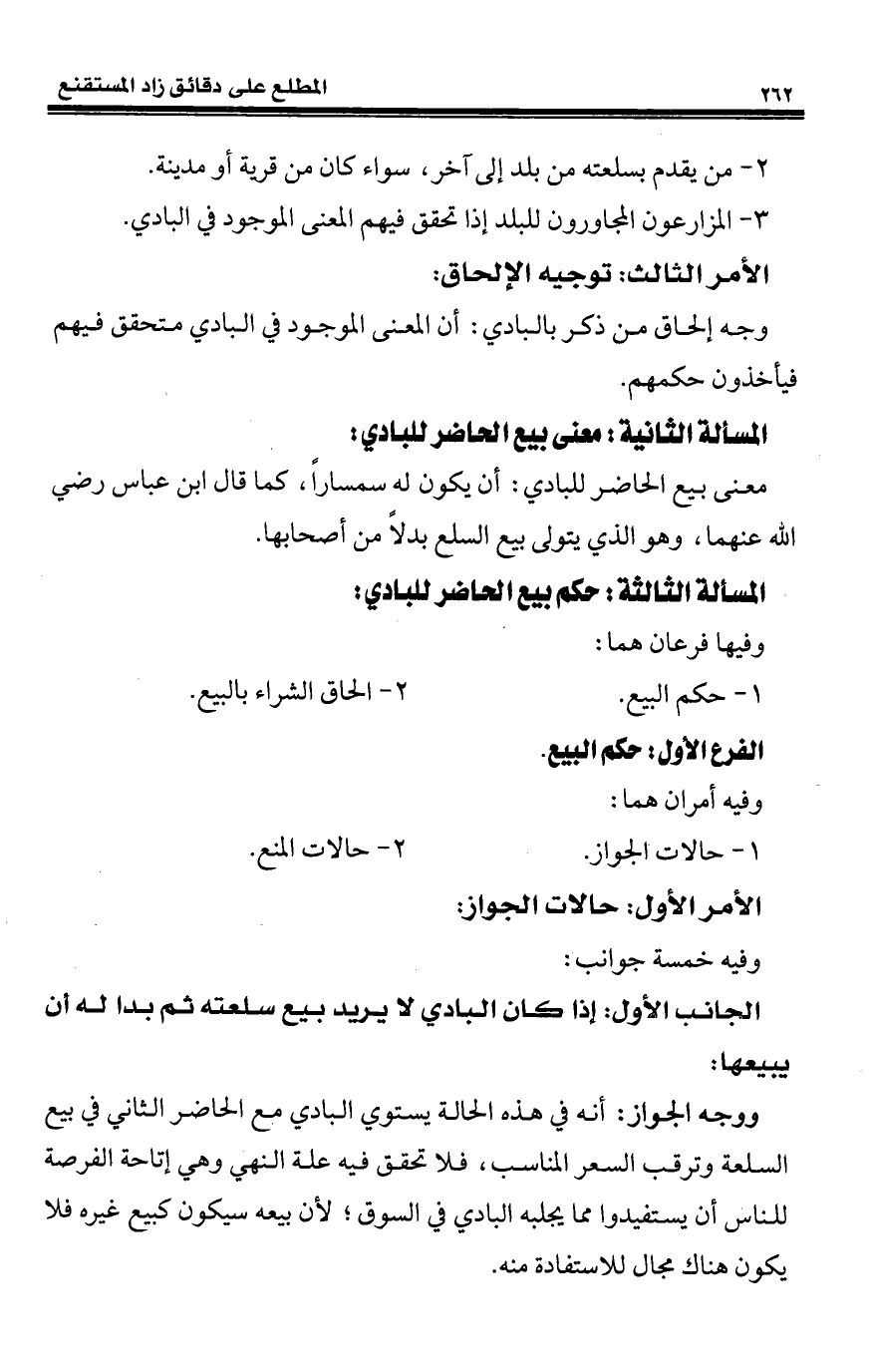 المسألة الثانية: معنى بيع الحاضر للبادي: