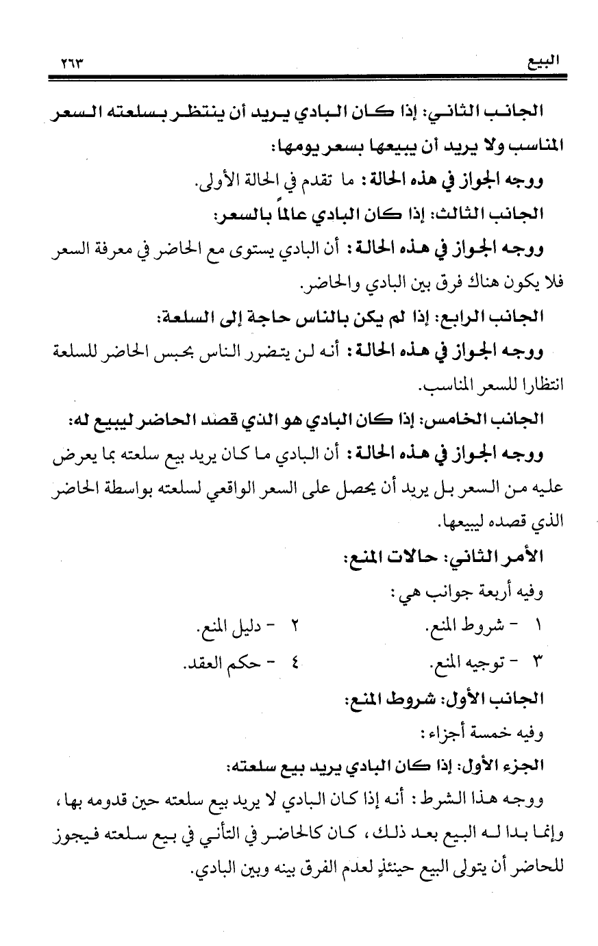 ووجه الجواز في هذه الحالة: أن البادي ما كان يريد بيع سلعته بما يعرض عليه من السعر بل يريد أن يحصل على السعر الواقعي لسلعته بواسطة الحاضر الذي قصده ليبيعها.