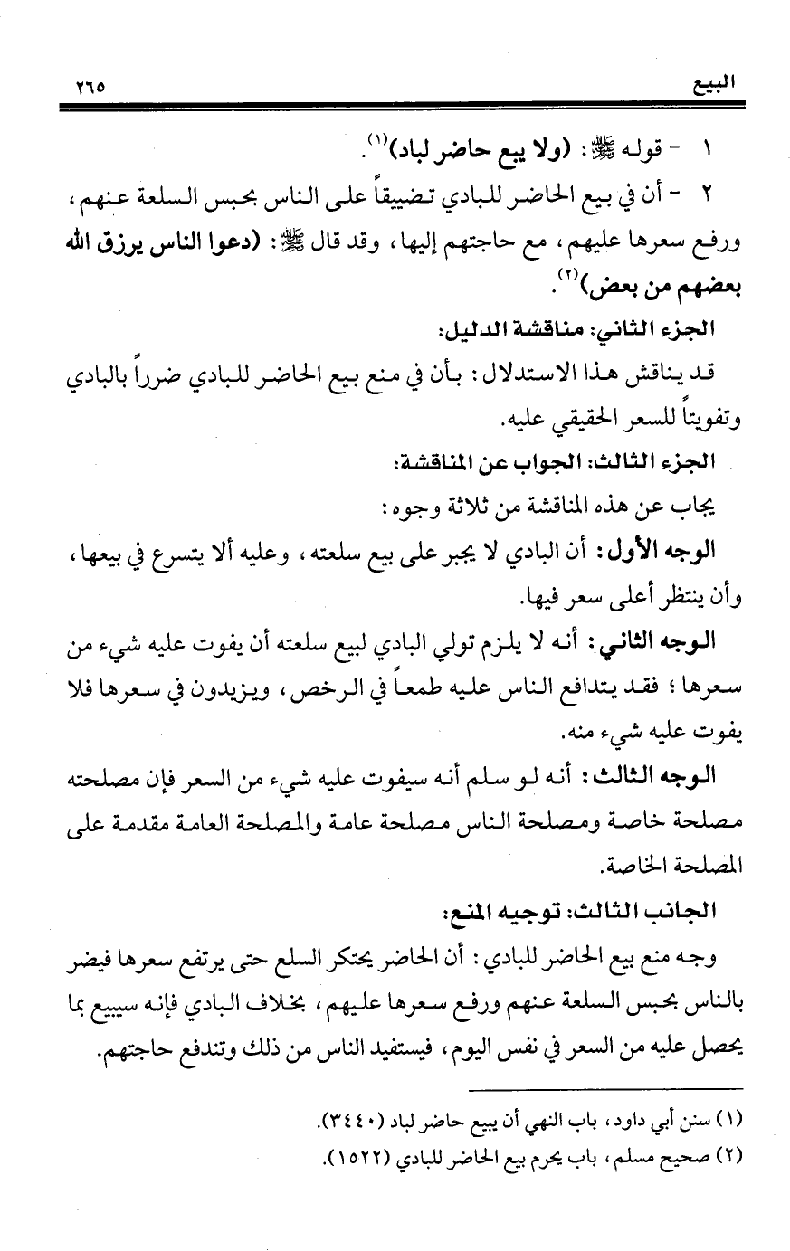 (¬2) صحيح مسلم، باب يحرم بيع الحاضر للبادي (1522).