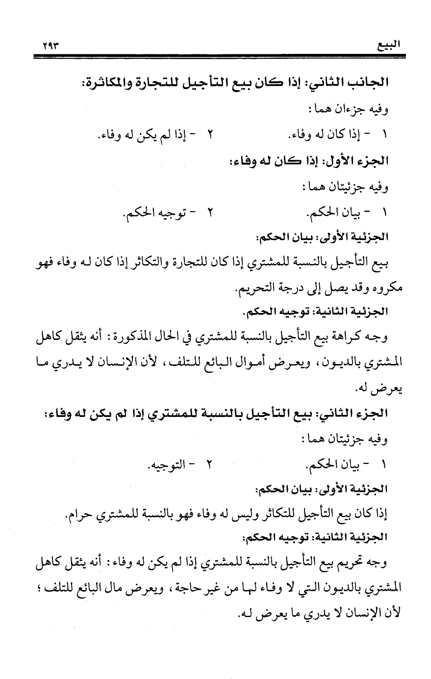 الجزء الثاني: بيع التأجيل بالنسبة للمشتري إذا لم يكن له وفاء: