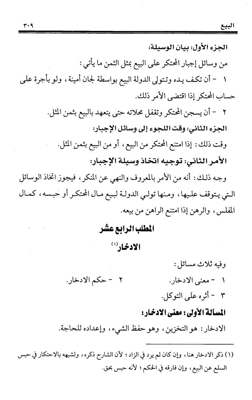 (¬1) ذكر الادخار هنا، وإن كان لم يرد في الزاد؛ لأن الشارح ذكره، ولشبهه بالاحتكار في حبس السلع عن البيع، وإن فارقه في الحكم؛ لأنه حبس بحق.