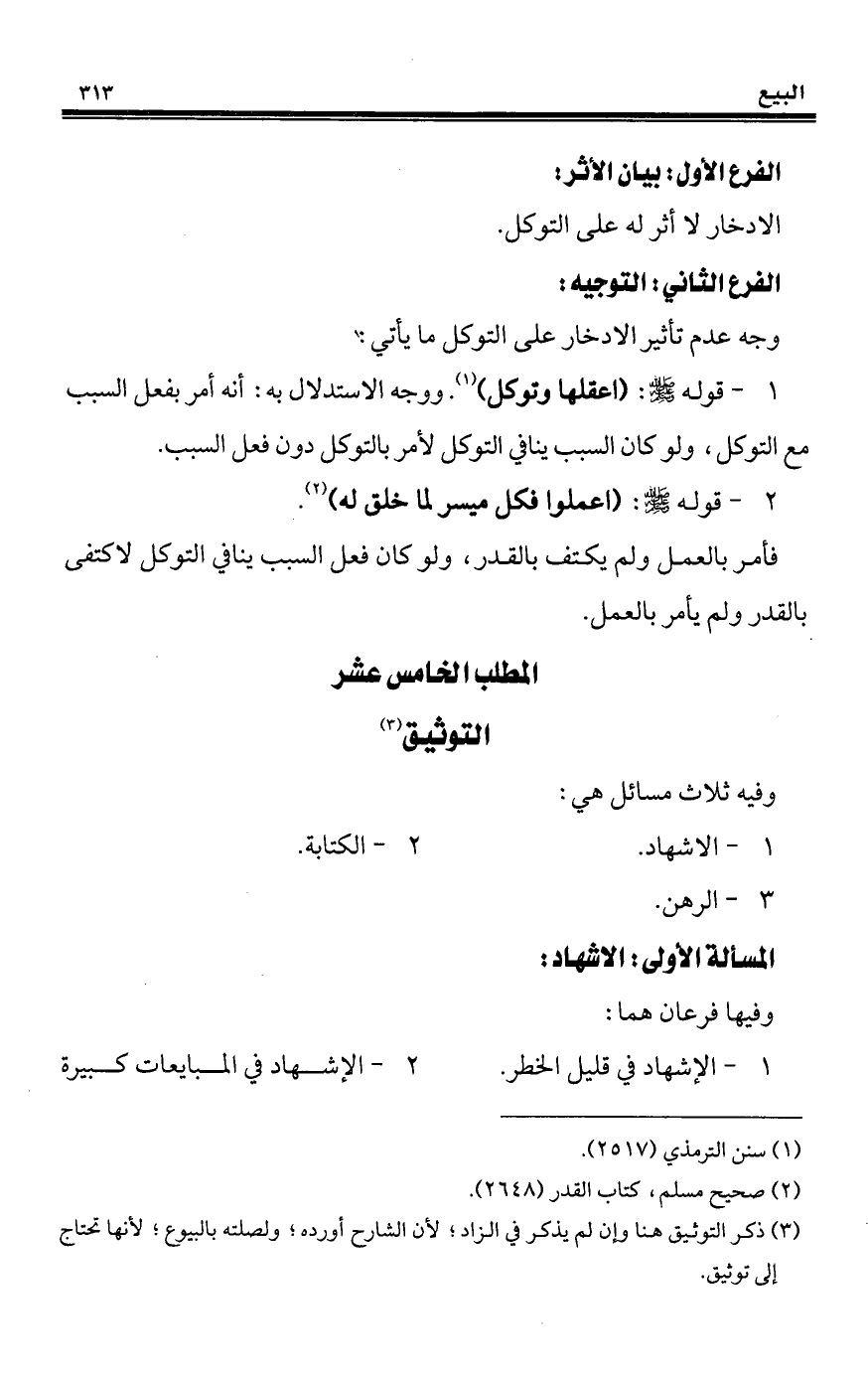 (¬3) ذكر التوثيق هنا وإن لم يذكر في الزاد؛ لأن الشارح أورده؛ ولصلته بالبيوع؛ لأنها تحتاج إلى توثيق.