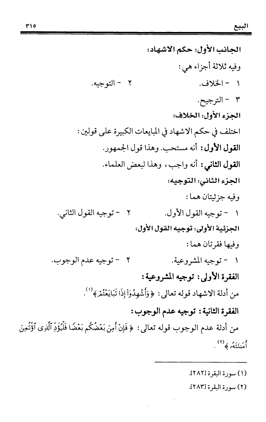 اختلف في حكم الإشهاد في المبايعات الكبيرة على قولين:
