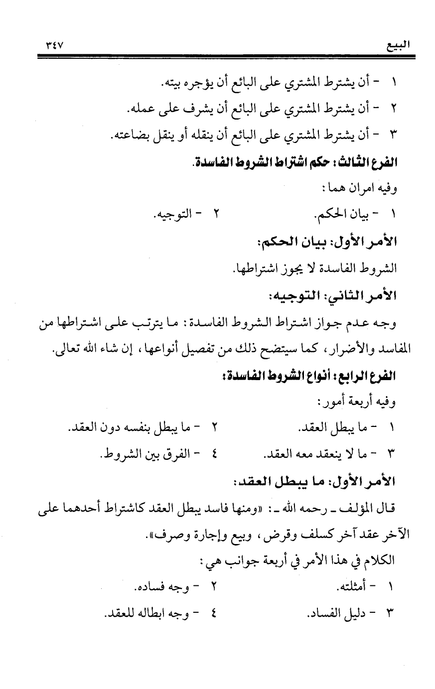 الفرع الثالث: حكم اشتراط الشروط الفاسدة.