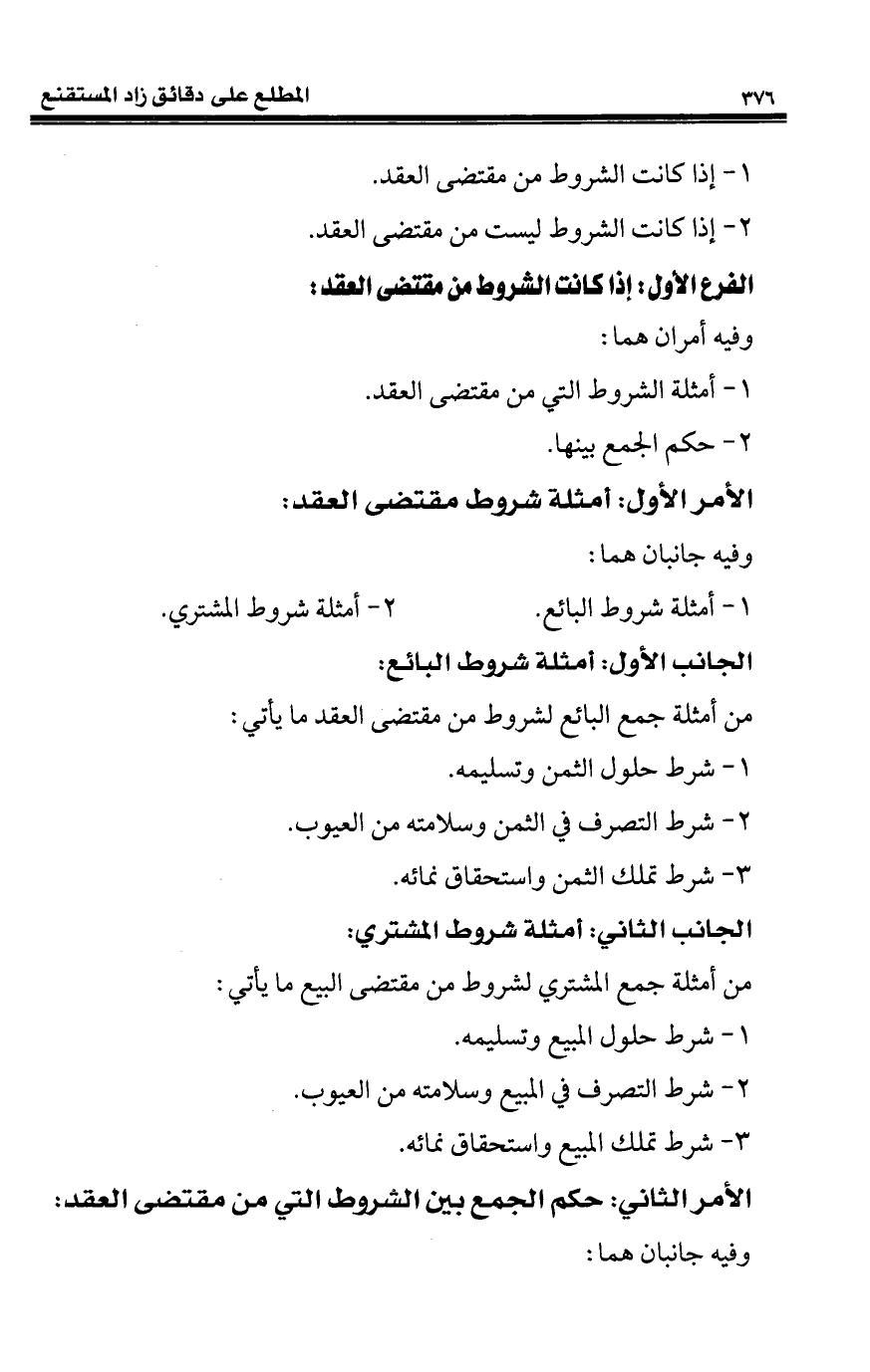 الأمر الأول: أمثلة شروط مقتضى العقد: