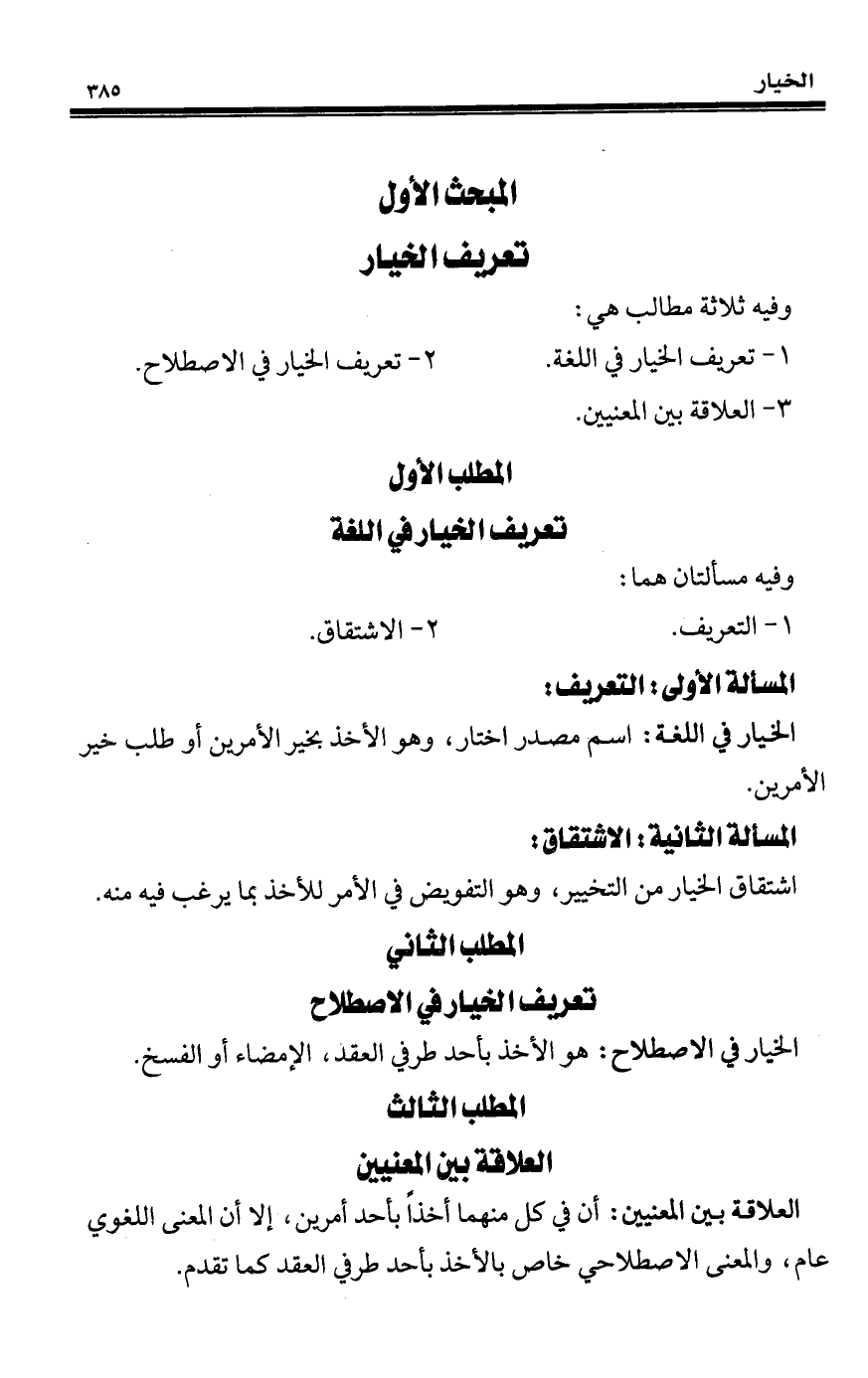 المطلب الثاني تعريف الخيار في الاصطلاح