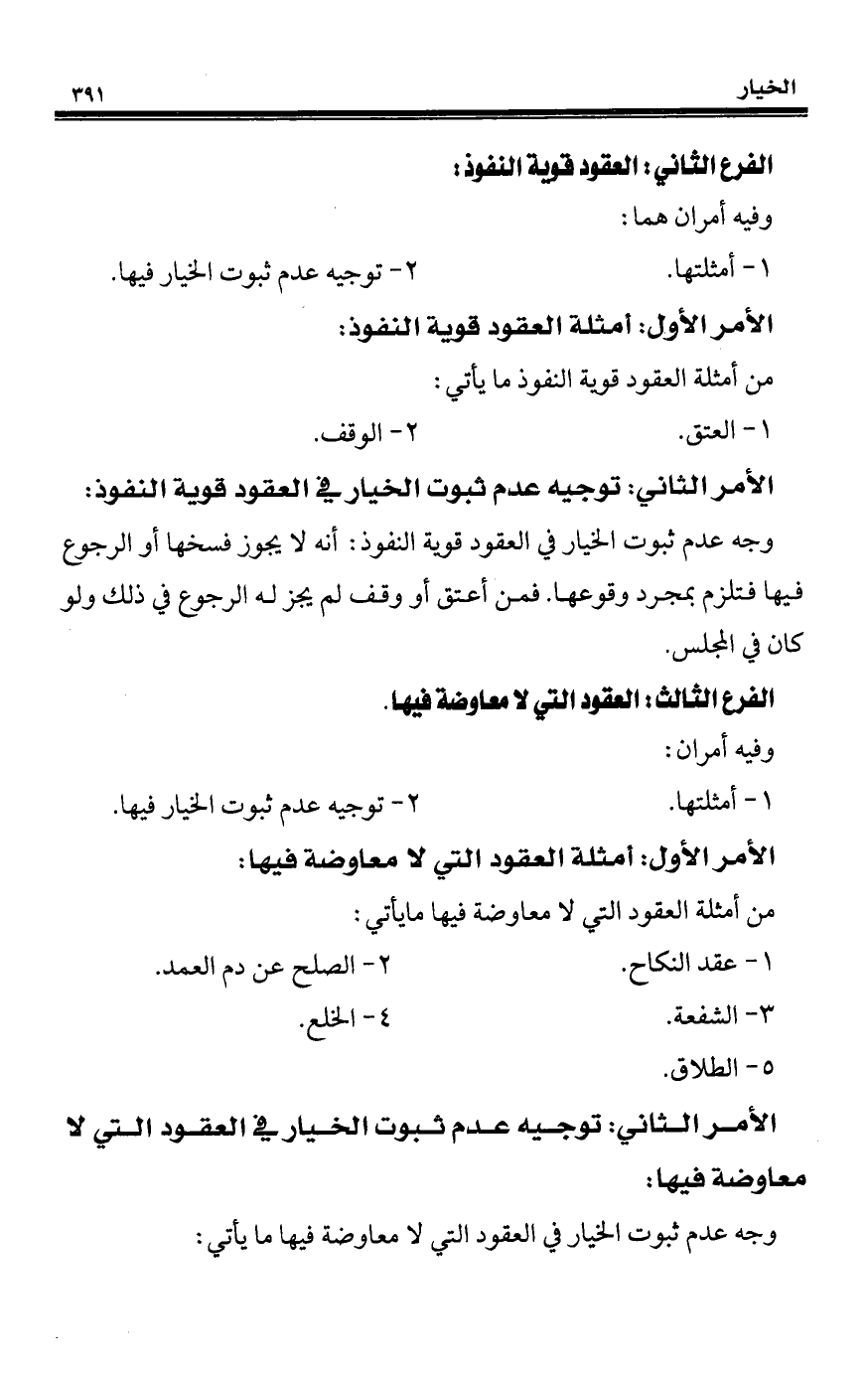 الأمر الثاني: توجيه عدم ثبوت الخيار في العقود قوية النفوذ: