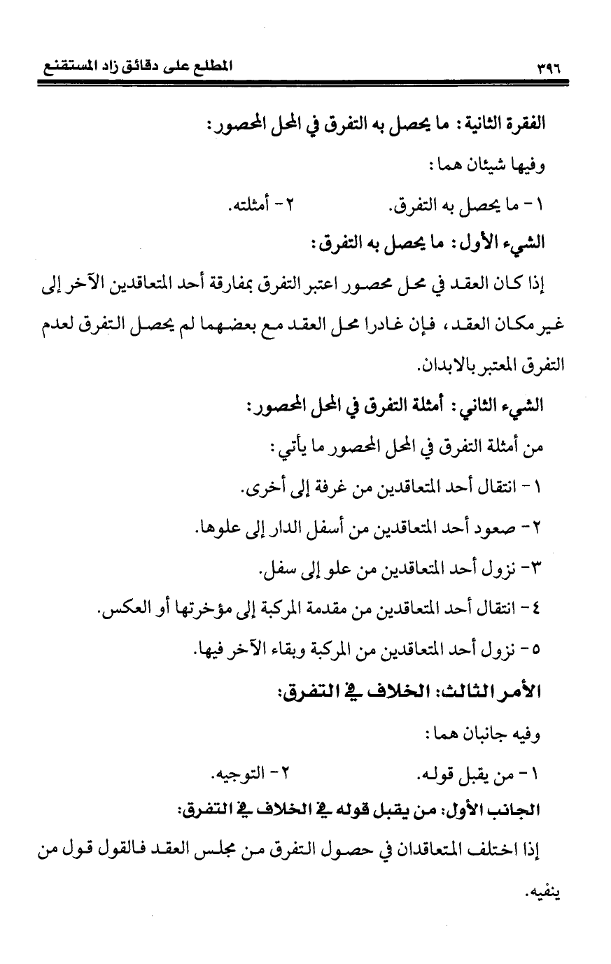 الفقرة الثانية: ما يحصل به التفرق في المحل المحصور: