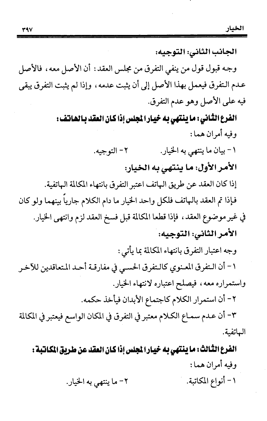 إذا كان العقد عن طريق الهاتف اعتبر التفرق بانتهاء المكالمة الهاتفية.