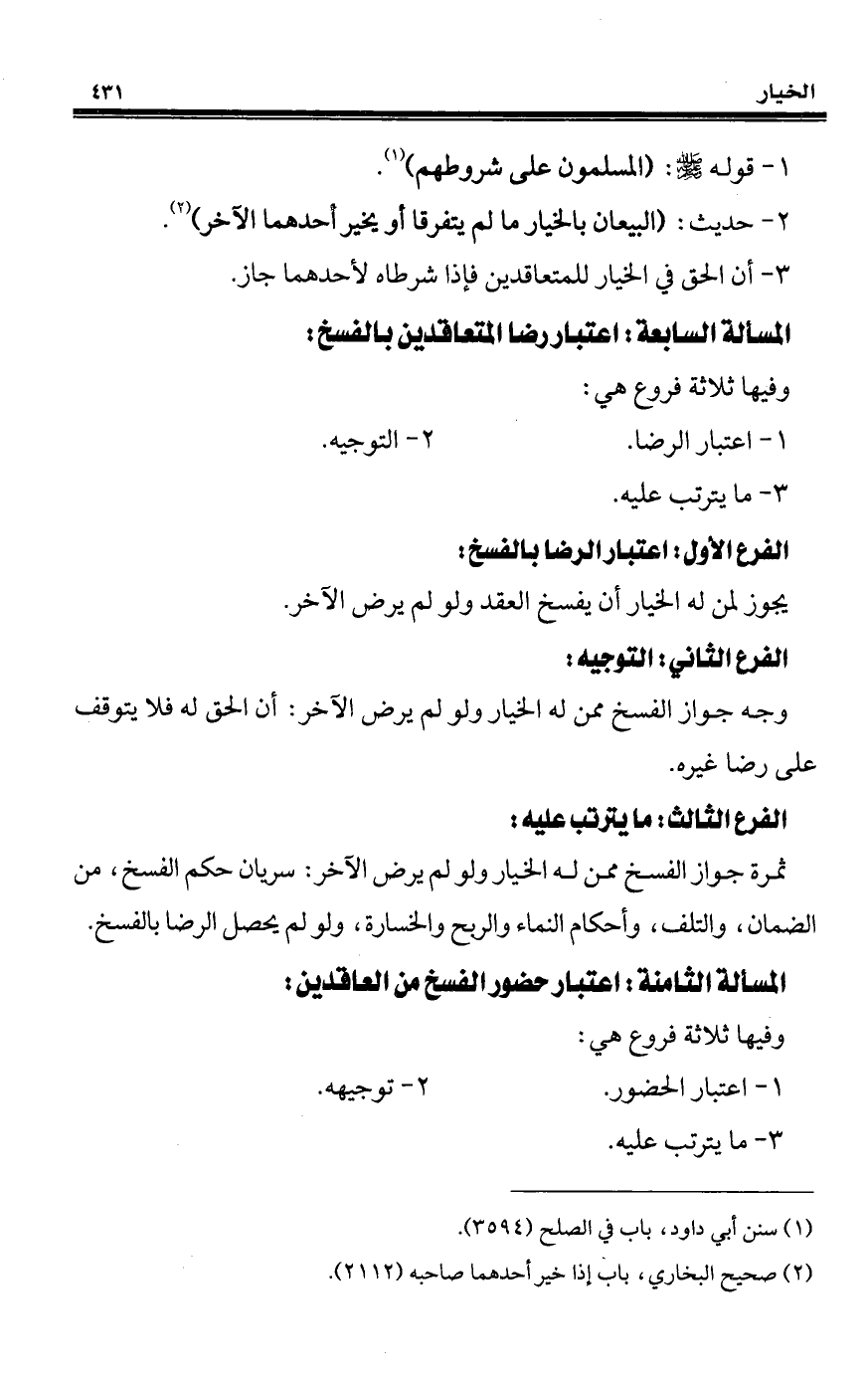 المسألة السابعة: اعتبار رضا المتعاقدين بالفسخ: