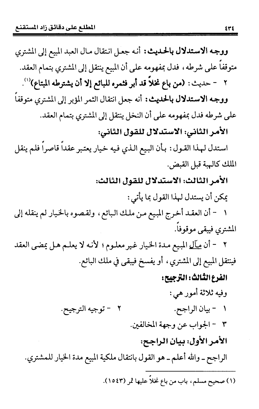 (¬1) صحيح مسلم، باب من باع نخلًا عليها ثمر (1543).