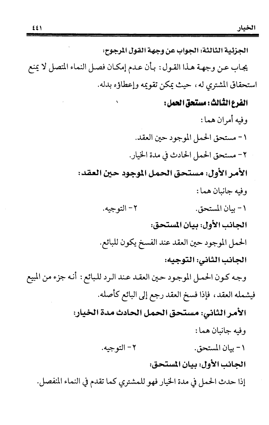 الحمل الموجود حين العقد عند الفسخ يكون للبائع.