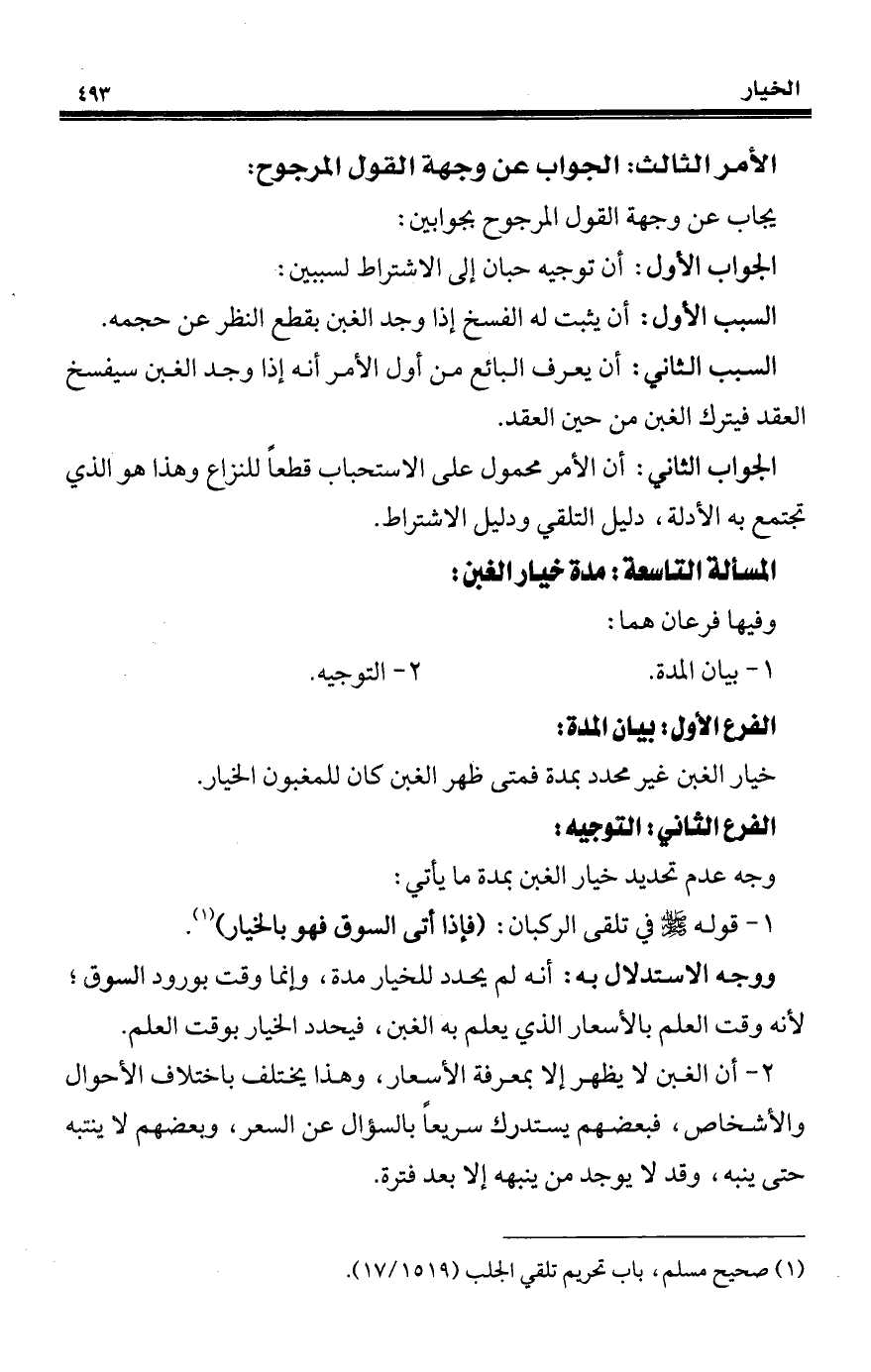 ووجه الاستدلال به: أنه لم يحدد للخيار مدة، وإنما وقت بورود السوق؛ لأنه وقت العلم بالأسعار الذي يعلم به الغبن، فيحدد الخيار بوقت العلم.