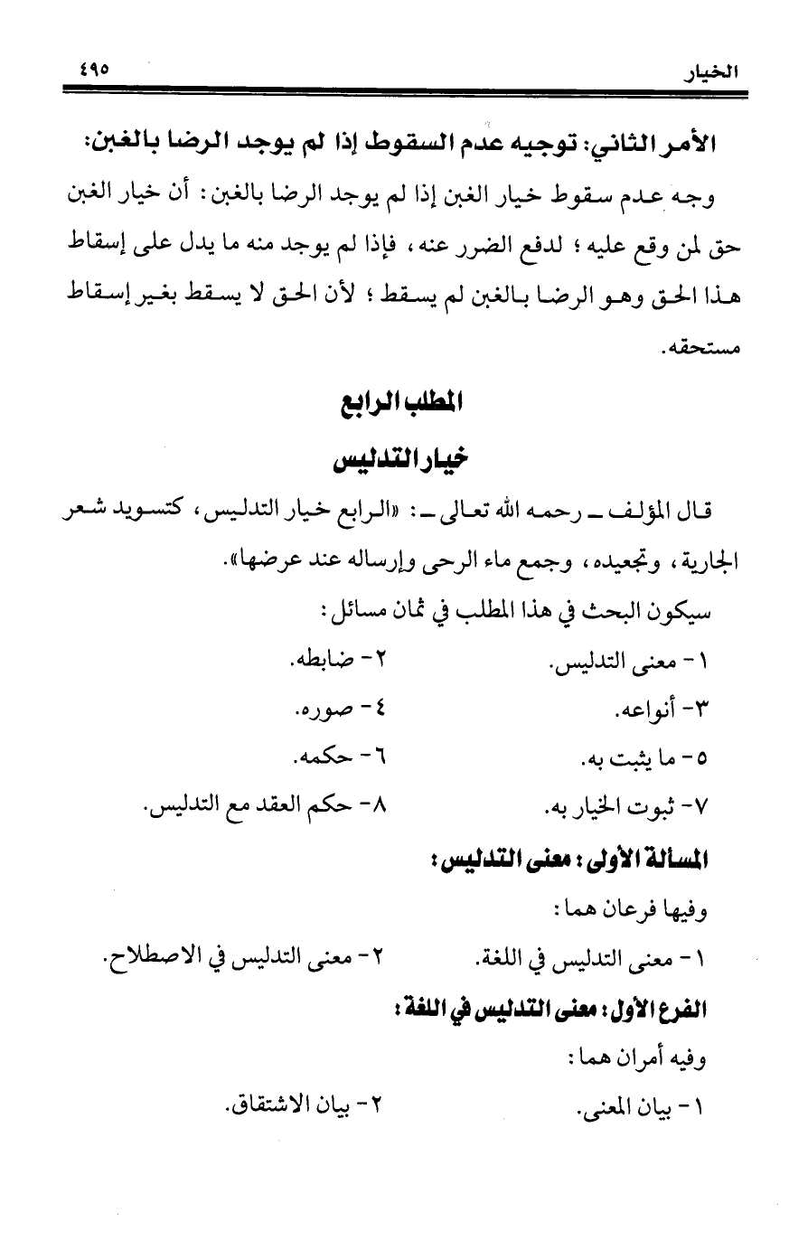 قال المؤلف - رحمه الله تعالى -: "الرابع خيار التدليس، كتسويد شعر الجارية، وتجعيده، وجمع ماء الرحى وإرساله عند عرضها".
