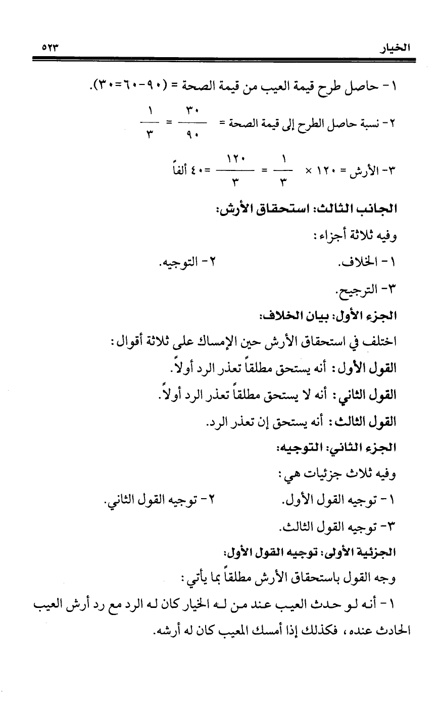 3 - الأرش= 120 × 1/ 3 = 120/ 3 = 40 ألفًا