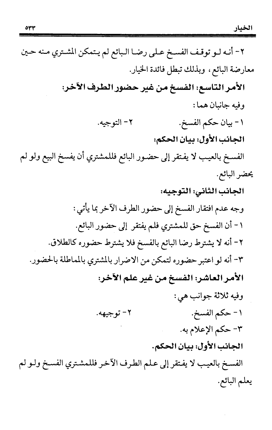 الأمر التاسع: الفسخ من غير حضور الطرف الآخر: