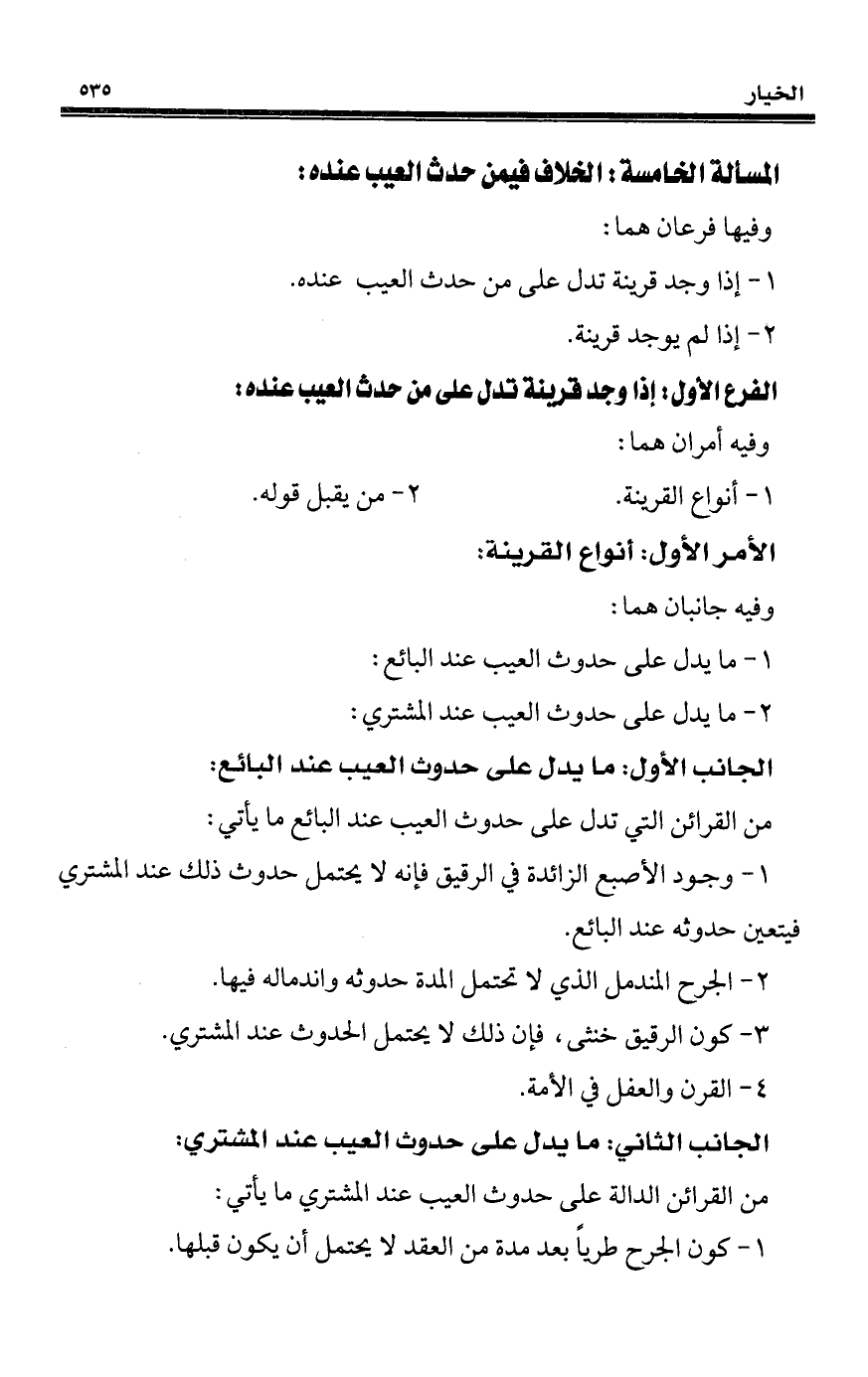 المسألة الخامسة: الخلاف فيمن حدث العيب عنده: