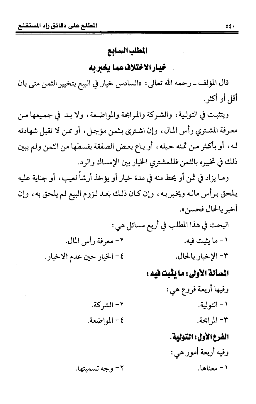 كتاب المطلع على دقائق زاد المستقنع «المعاملات المالية» (اسم الجزء: 1)