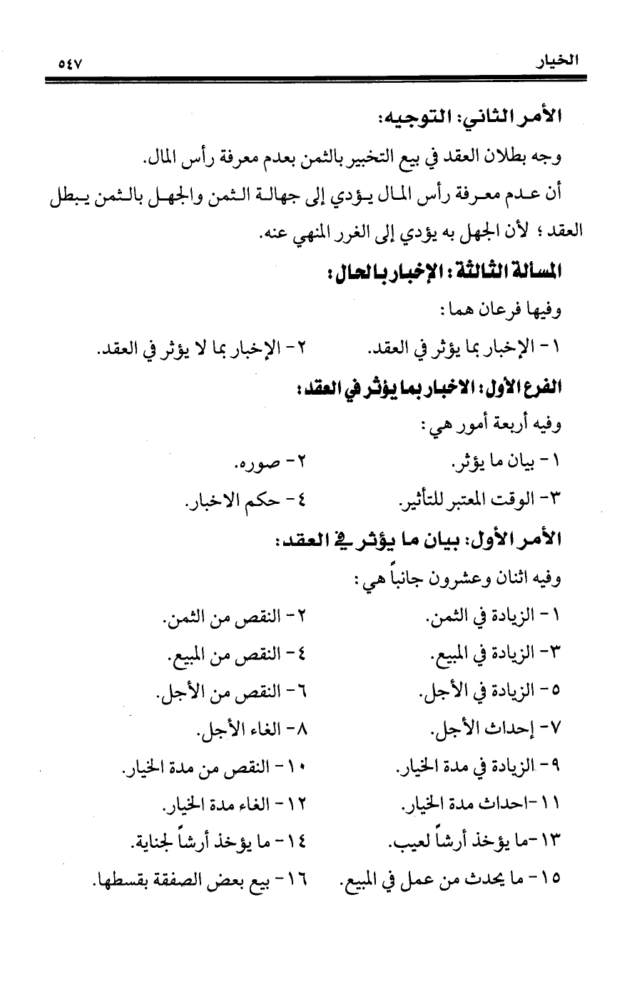 الأمر الأول: بيان ما يؤثر في العقد: