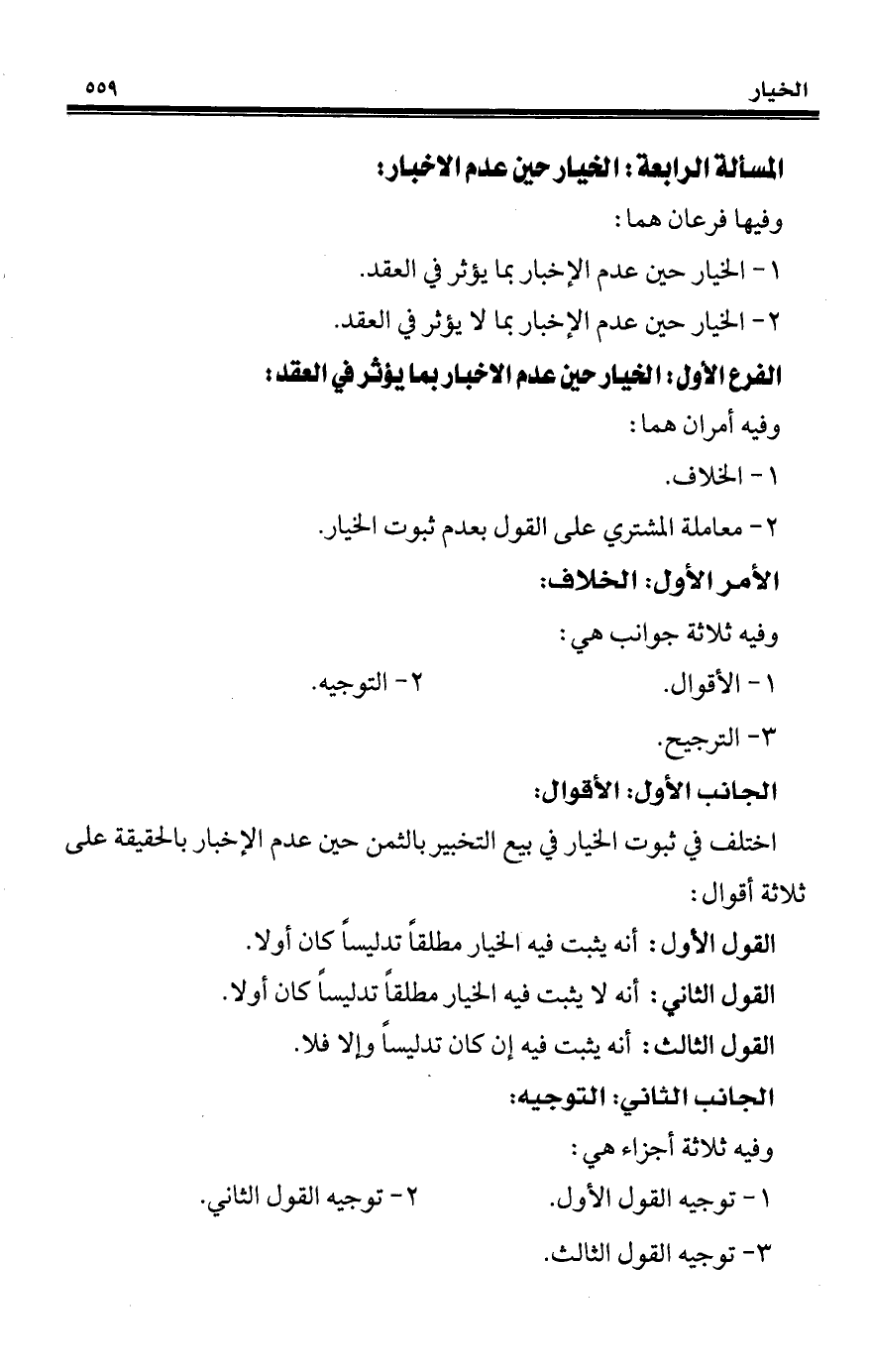 المسألة الرابعة: الخيار حين عدم الإخبار:
