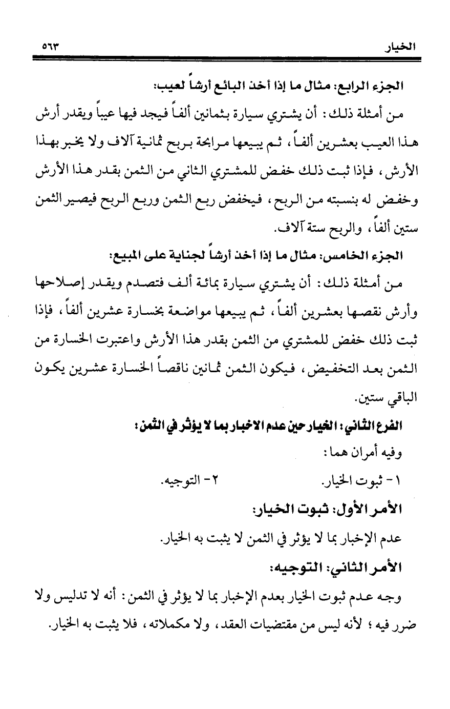 الجزء الخامس: مثال ما إذا أخذ أرشاً لجناية على المبيع: