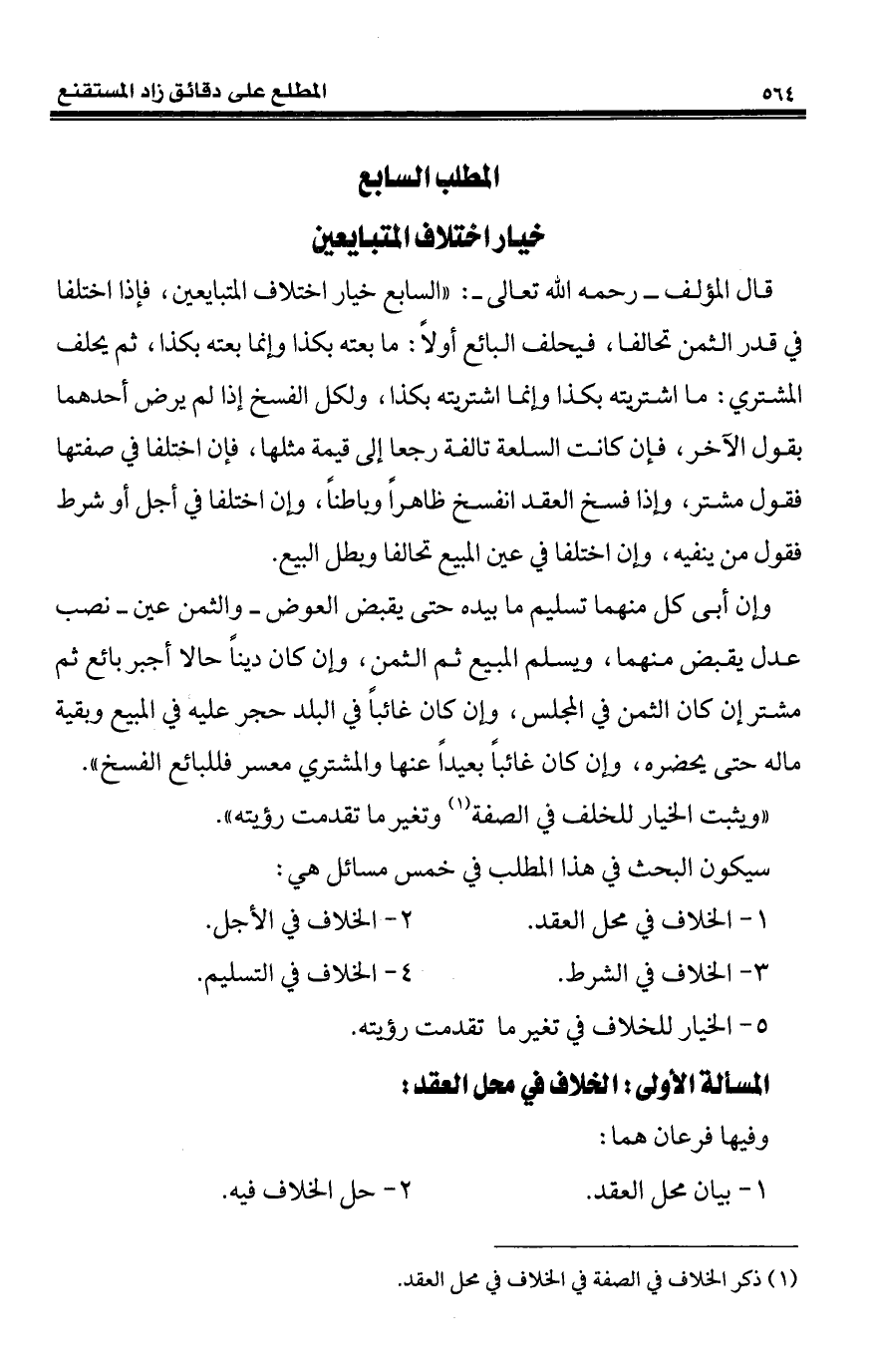 (¬1) ذكر الخلاف في الصفة في الخلاف في محل العقد.