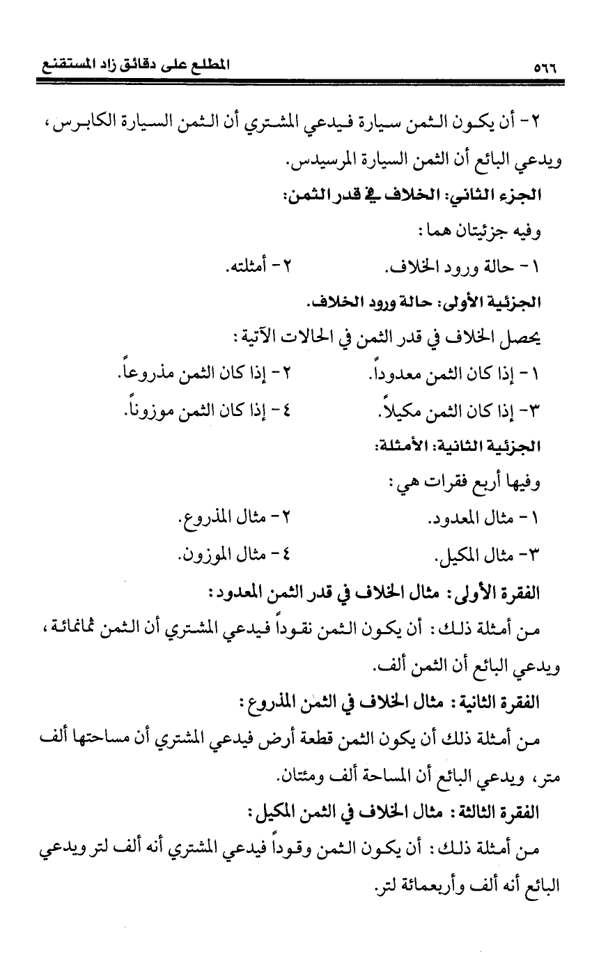 من أمثلة ذلك أن يكون الثمن قطعة أرض فيدعي المشتري أن مساحتها ألف متر، ويدعي البائع أن المساحة ألف ومئتان.