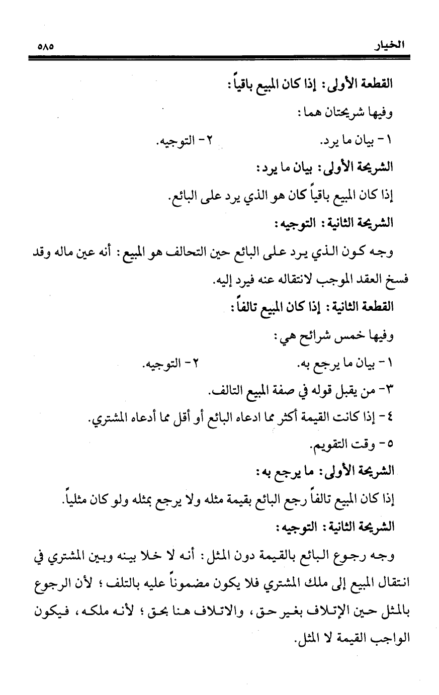 القطعة الأولى: إذا كان المبيع باقياً: