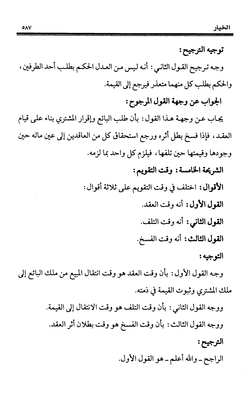 وجه القول الأول: بأن وقت العقد هو وقت انتقال المبيع من ملك البائع إلى ملك المشتري وثبوت القيمة في ذمته.