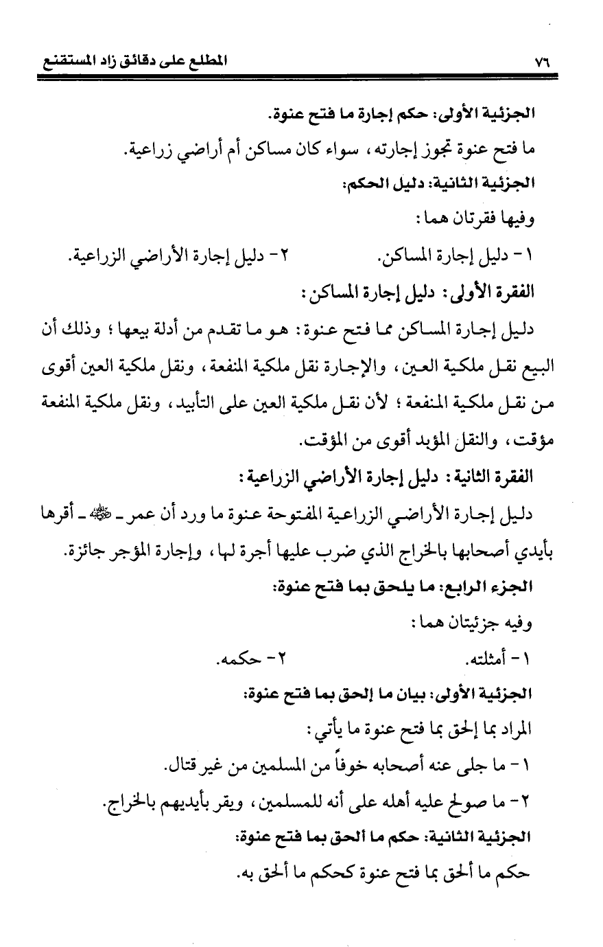 الجزئية الأولى: حكم إجارة ما فتح عنوة.