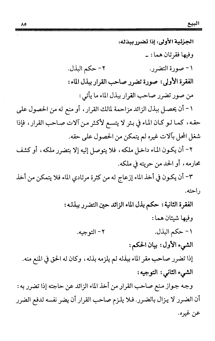 من صور تضرر صاحب القرار ببذل الماء ما يأتي: