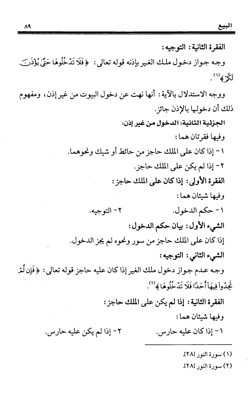 وجه عدم جواز دخول ملك الغير إذا كان عليه حاجز قوله تعالى: {فَإِنْ لَمْ تَجِدُوا فِيهَا أَحَدًا فَلَا تَدْخُلُوهَا} (¬2).