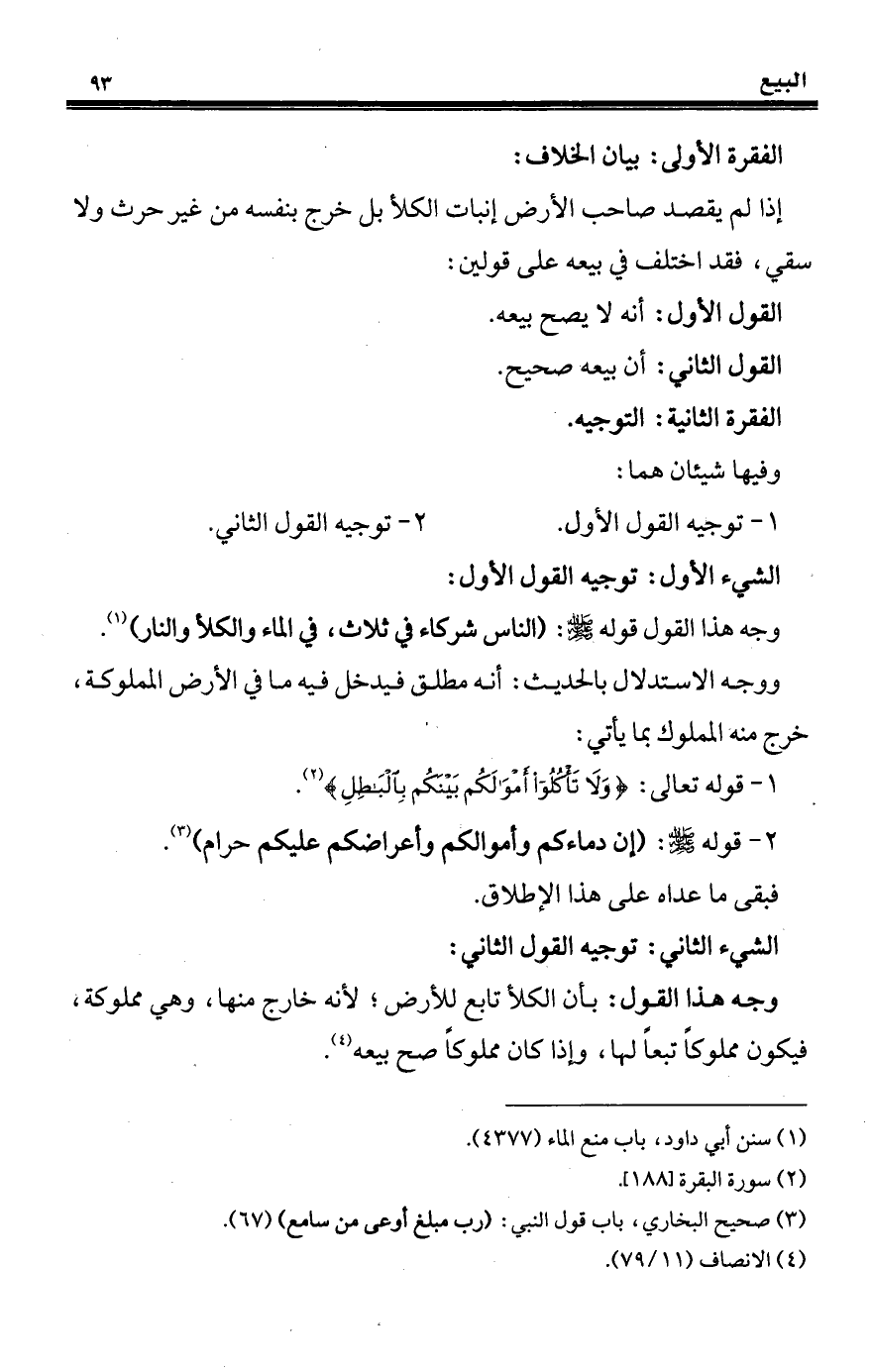 وجه هذا القول: بأن الكلأ تابع للأرض؛ لأنه خارج منها، وهي مملوكة، فيكون مملوكًا تبعًا لها، وإذا كان مملوكًا صح بيعه (¬4).