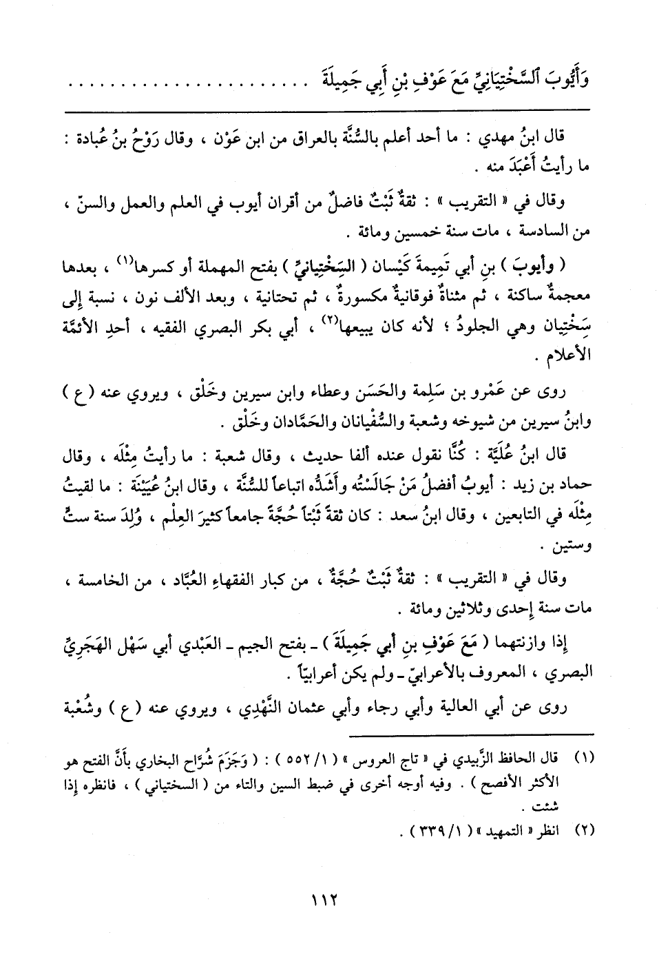 وَأَيُّوبَ السَّخْتِيَانِيِّ مَعَ عَوْفِ بْنِ أبي جَمِيلَةَ