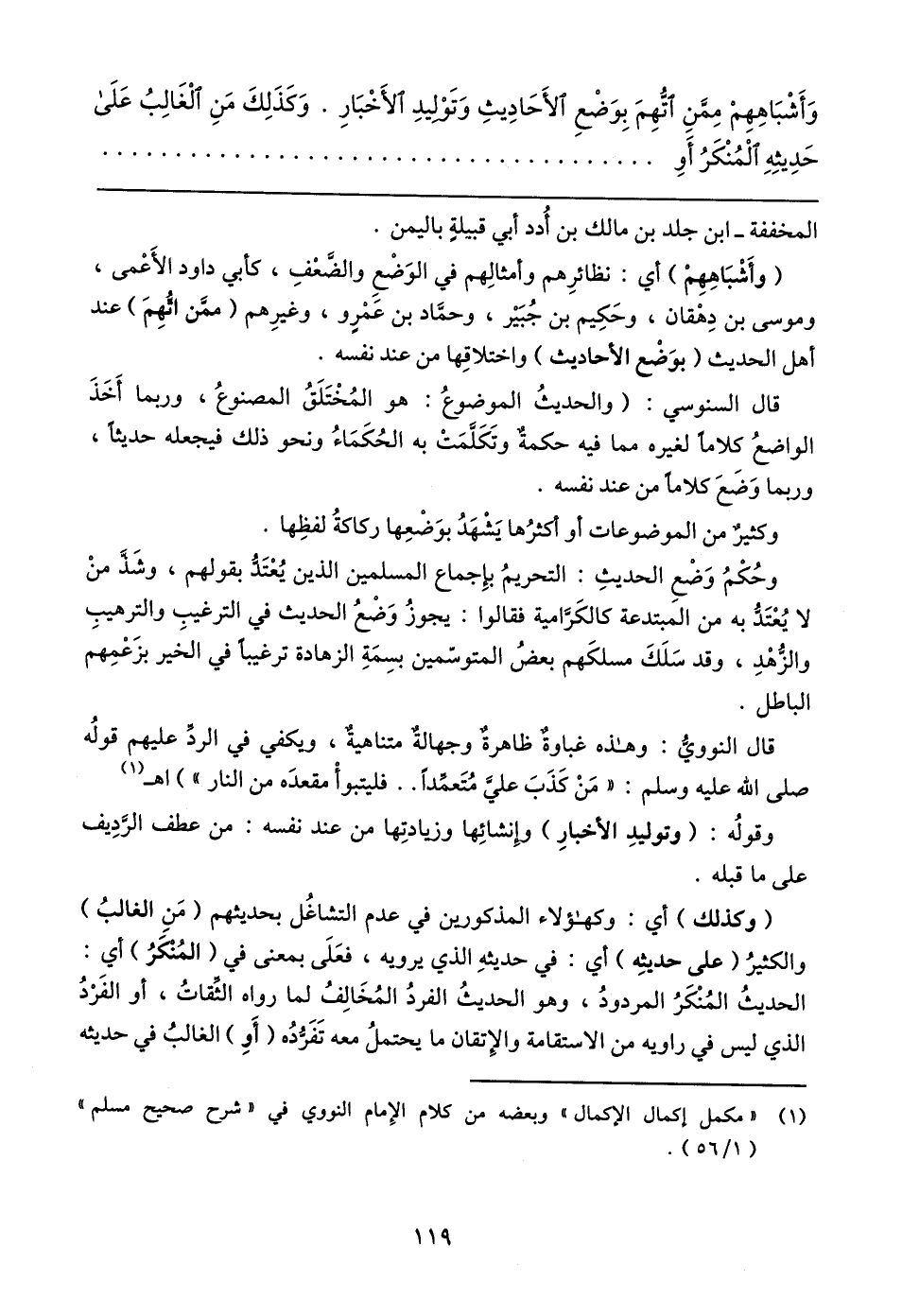 وَأَشْبَاهِهِمْ مِمَّنِ اتُّهِمَ بِوَضْعِ الأَحَادِيثِ وَتَوْلِيدِ الأَخْبَارِ. وَكَذَلِكَ مَنِ الْغَالِبُ عَلَى حَدِيثِهِ الْمُنْكَرُ أَو