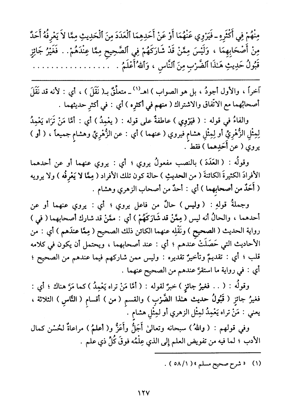 مِنْهُمْ فِي أَكْثَرِهِ- فَيَرْوي عَنْهُمَا أَوْ عَنْ أَحَدِهِمَا الْعَدَدَ مِنَ الْحَدِيثِ مِمَّا لَا يَعْرِفُهُ أَحَدٌ مِنْ أَصْحَابِهِمَا، وَلَيسَ مِمَّنْ قَدْ شَارَكَهُمْ فِي الصَّحِيحِ مِمَّا عِنْدَهُمْ .. فَغَيرُ جَائِزٍ قَبُولُ حَدِيثِ هَذَا الضَّرْبِ مِنَ النَّاسِ، وَاللهُ أَعْلَمُ