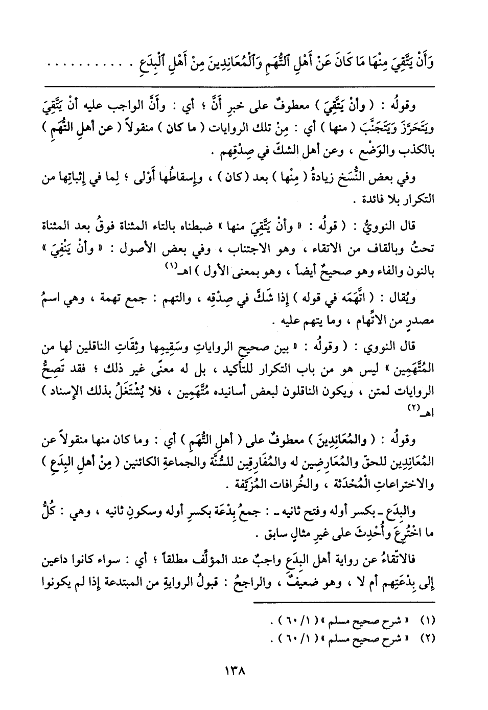 وَأَنْ يَتَّقِيَ مِنْهَا مَا كَانَ عَنْ أَهْلِ التُّهَمِ وَالْمُعَانِدِينَ مِنْ أَهْلِ الْبِدَعِ