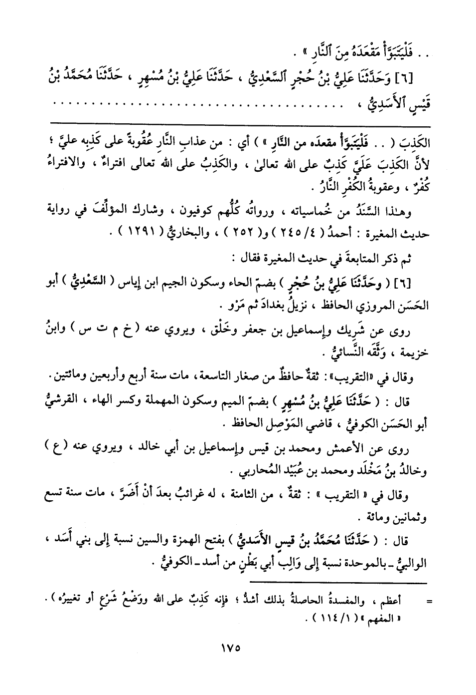 [٦] وَحَدَّثَنَا عَلِيُّ بْنُ حُجْرٍ السَّعْدِيُّ، حَدَّثَنَا عَلِيُّ بْنُ مُسْهِرٍ، حَدَّثَنَا مُحَمَّدُ بْنُ قَيسٍ الأَسَدِيُّ،