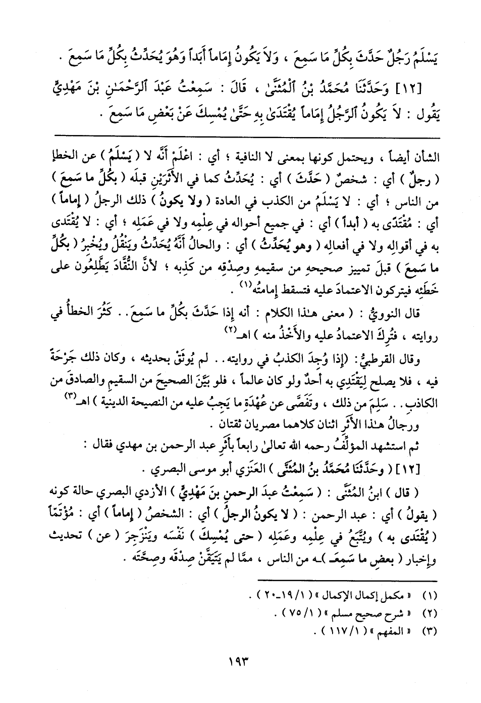 [١٢] وَحَدَّثَنَا مُحَمَّدُ بْنُ الْمُثَنَّى، قَال: سَمِعْتُ عَبْدَ الرَّحْمَنِ بْنَ مَهْدِيٍّ يَقُول: لَا يَكُونُ الرَّجُلُ إِمَامًا يُقْتَدَى بِهِ حَتَّى يُمْسِكَ عَنْ بَعْضِ مَا سَمِعَ