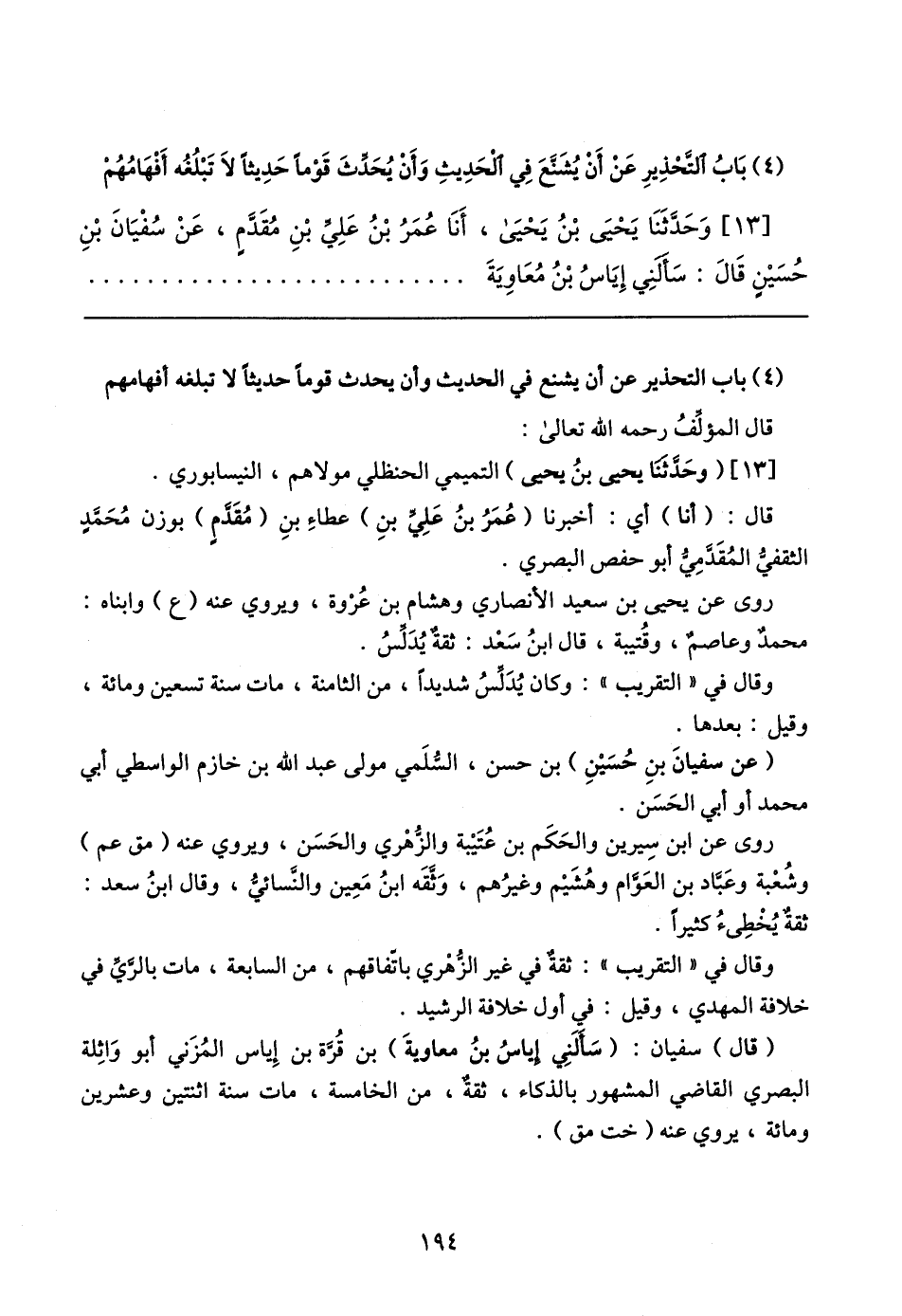 [١٣] وَحَدَّثَنَا يَحْيَى بْنُ يَحْيَى، أَنَا عُمَرُ بْنُ عَلِيِّ بْنِ مُقَدَّمٍ، عَنْ سُفْيَانَ بْنِ حُسَينٍ قَال: سَأَلَنِي إِيَاسُ بْنُ مُعَاويَةَ