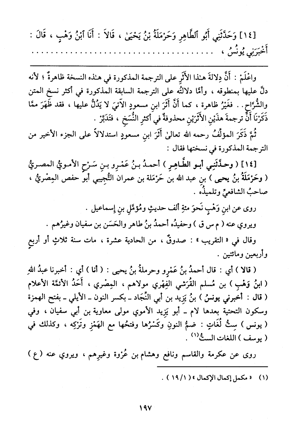 [١٤] وَحَدَّثَنِي أَبُو الطَّاهِرِ وَحَرْمَلَةُ بْنُ يَحْيَى، قَالا: أَنَا ابْنُ وَهْبِ، قَال: أَخْبَرَنِي يُونُسُ،
