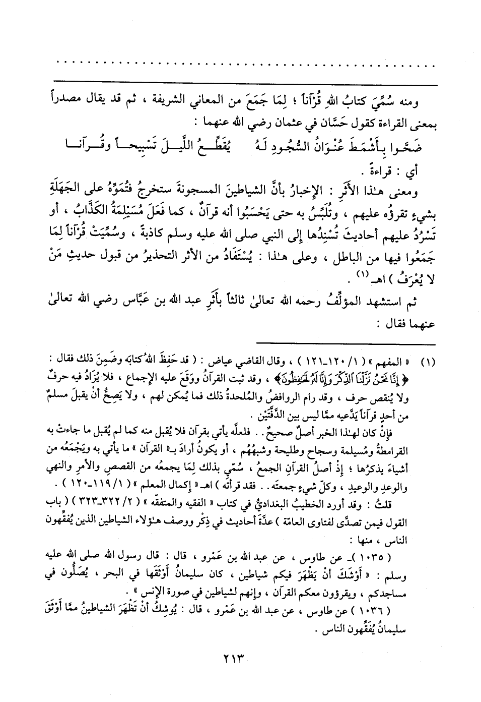 (١) "المفهم" (١/ ١٢٠ - ١٢١)، وقال القاضي عياض: (قد حَفِظَ اللهُ كتابَه وضَمِنَ ذلك فقال: {إِنَّا نَحْنُ نَزَّلْنَا الذِّكْرَ وَإِنَّا لَهُ لَحَافِظُونَ}، وقد ثبت القرآنُ ووَقَعَ عليه الإِجماع، فلا يُزَادُ فيه حرفٌ ولا يُنقص حرف، وقد رام الروافضُ والمُلحدةُ ذلك فما يُمكن لهم، ولا يَصِحُّ أنْ يقبلَ مسلمٌ من أحدٍ قرآنًا يَدَّعيه ممَّا ليس بين الدَّفَّتَين.