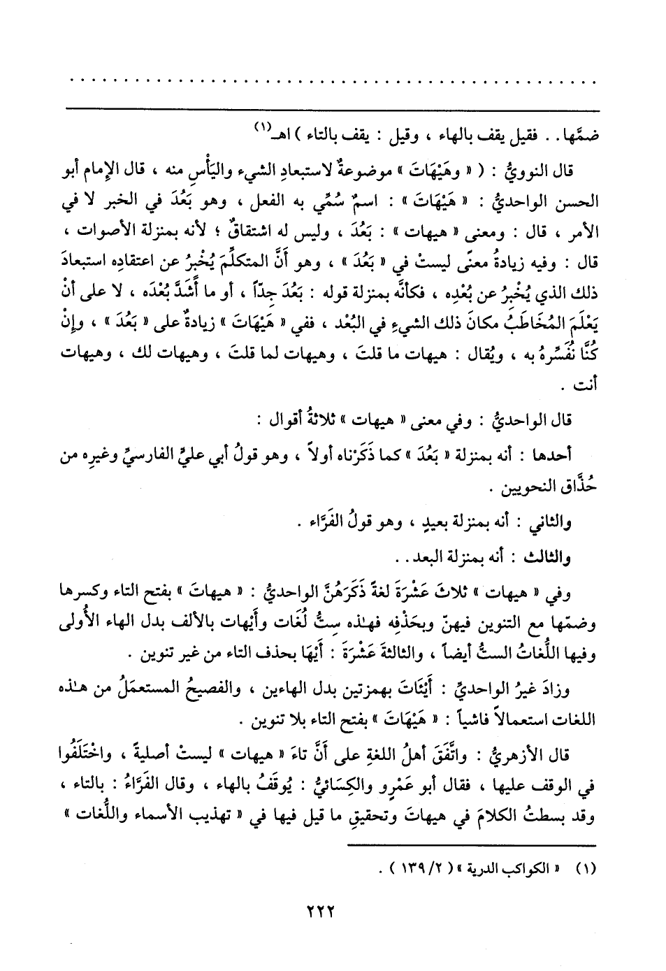 قال الواحديُّ: وفي معنى "هيهات" ثلاثةُ أقوال: