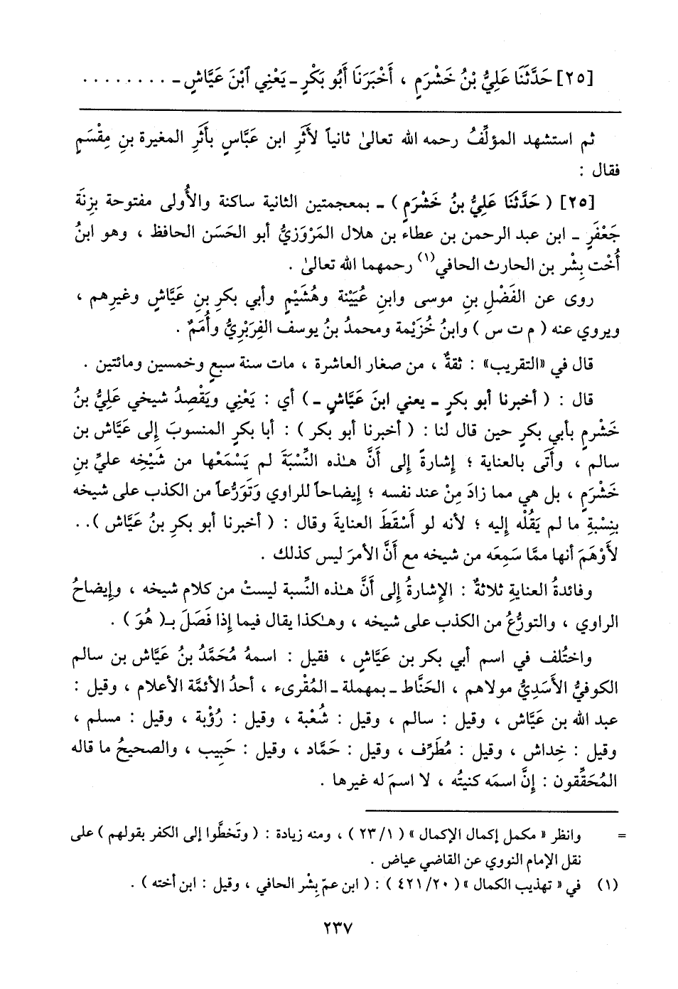 [٢٥] حَدَّثَنَا عَلِيُّ بْنُ خَشْرَمٍ، أَخْبَرَنَا أبُو بَكْرٍ -يَعْنِي ابْنَ عَيَّاشٍ-