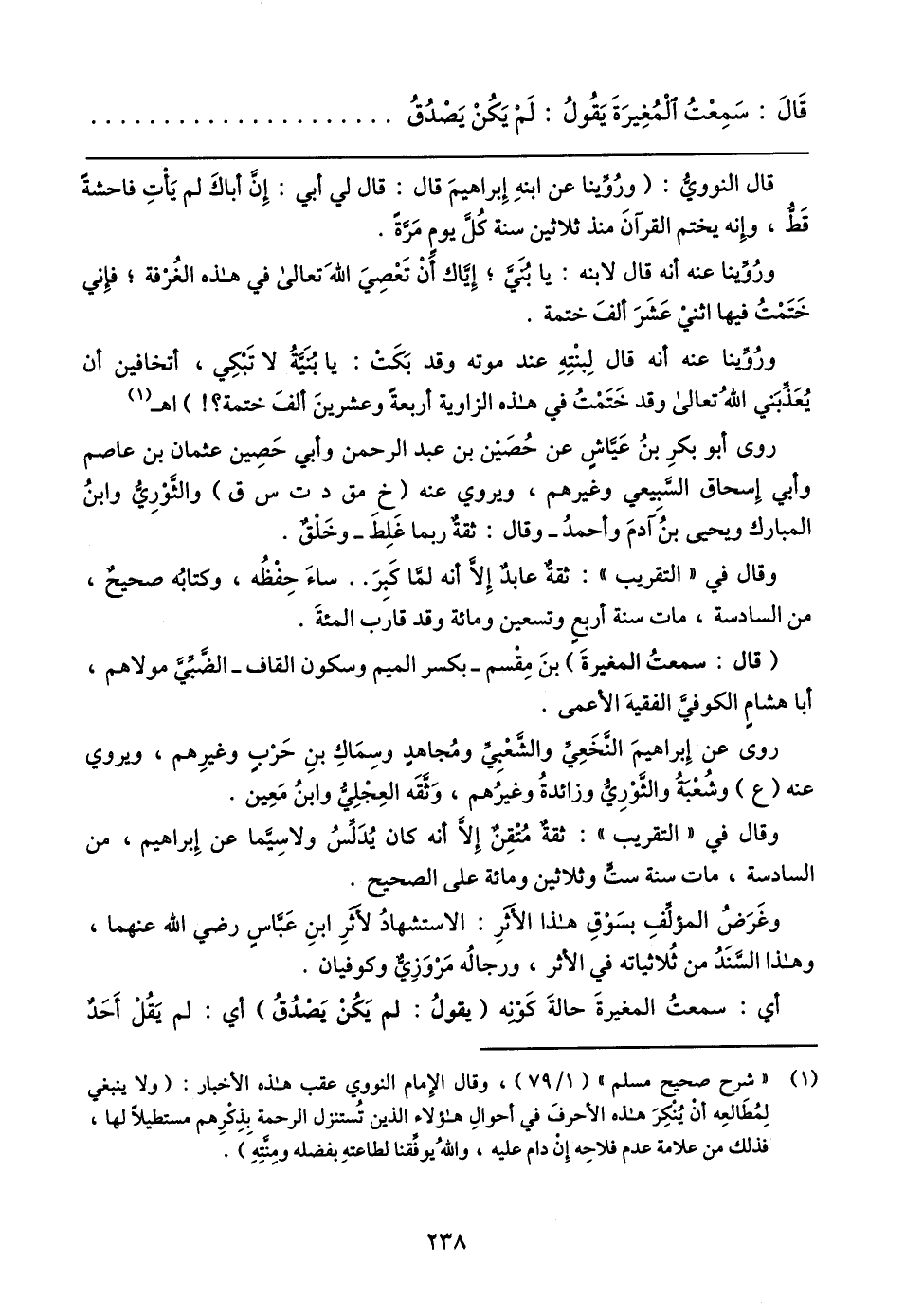 (١) "شرح صحيح مسلم" (١/ ٧٩)، وقال الإمام النووي عقب هذه الأخبار: (ولا ينبغي لِمُطَالعِه أن يُنْكِرَ هذه الأحرفَ في أحوالِ هؤلاء الذين تُستنزل الرحمة بِذِكْرِهم مستطيلًا لها، فذلك من علامة عدم فلاحِه إِنْ دام عليه، واللهُ يوفقنا لطاعتهِ بفضله ومِنَّتِهِ).